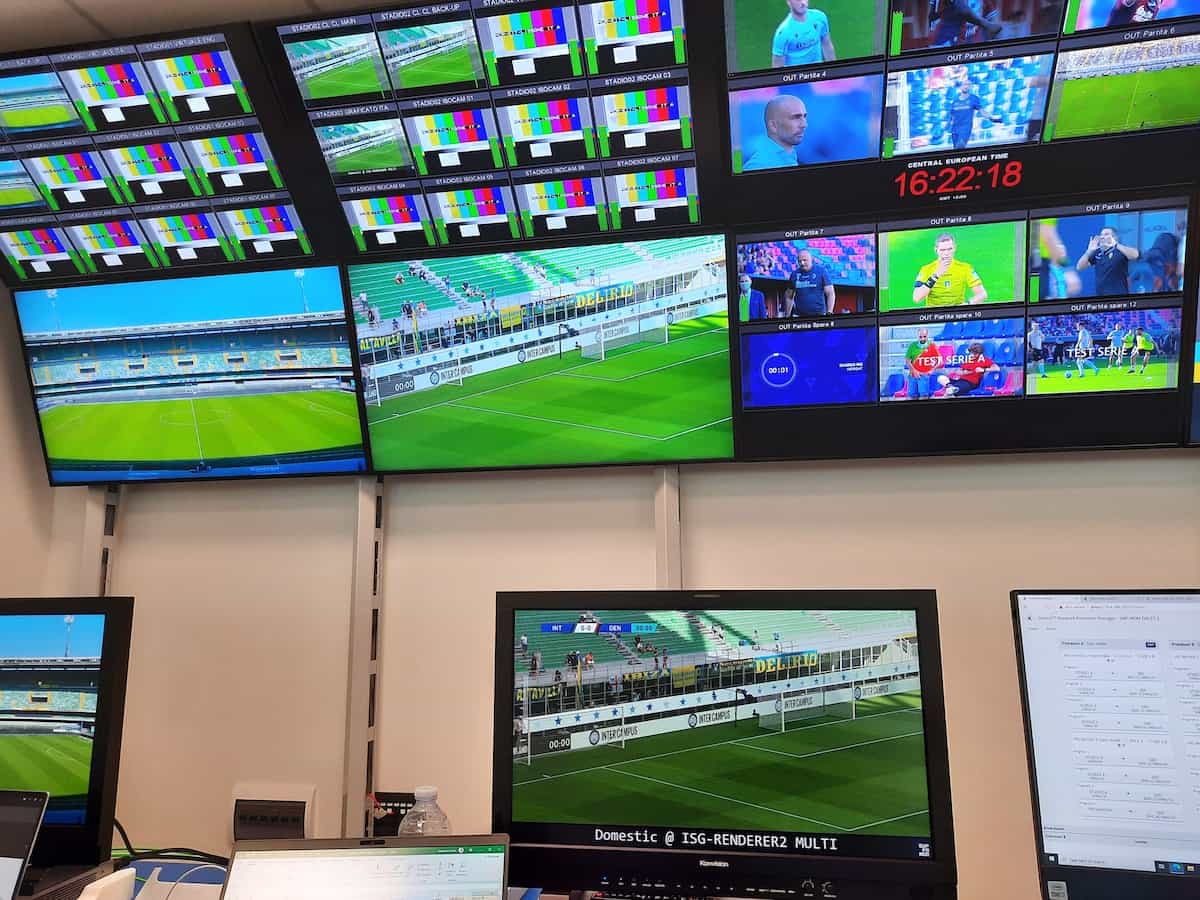 Queste procedure di remote production già oggi prevedono la possibilità di gestire i segnali provenienti dagli stadi che arrivano a Lissone su fibra ottica e qui sono effettuate tutte le lavorazioni utili, vengono inserite, infatti, le virtualizzazioni collettive e soggettive e anche le grafiche per i vari diversi mercati del prodotto “calcio”.