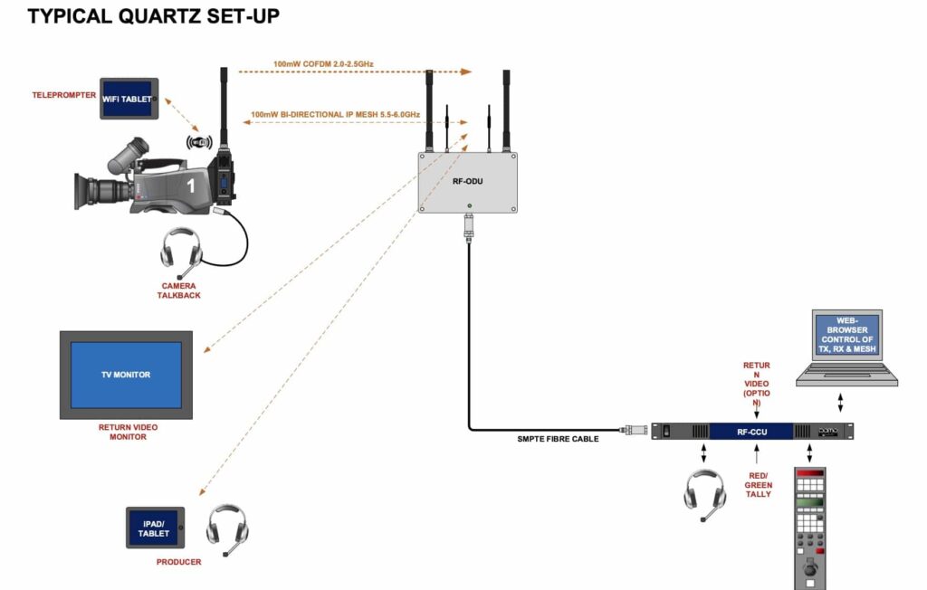 Incorporano un tradizionale percorso di trasporto COFDM DVB-T per video/audio HD/UHD e un segnale bidirezionale, un percorso dati IP, che utilizza la pluripremiata tecnologia radio MESH.