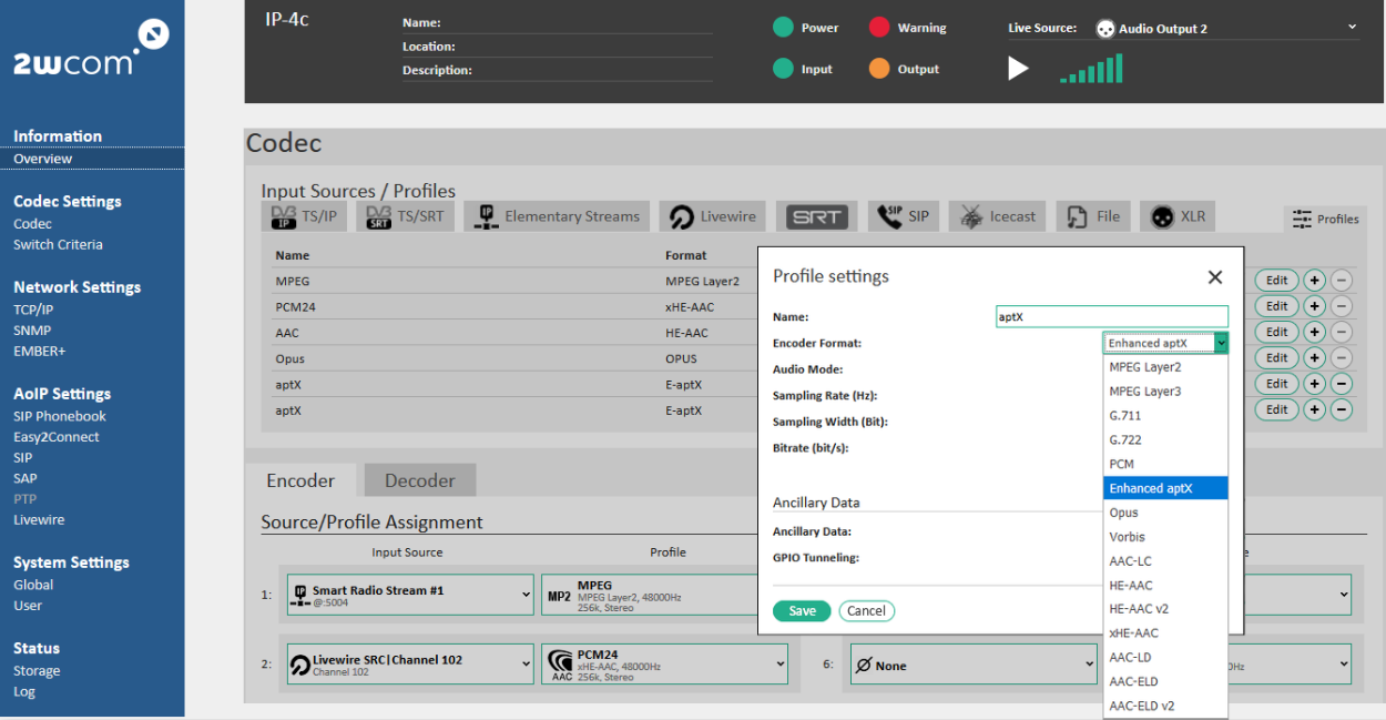 Il codec IP-4c a quattro canali audio over IP è un prodotto 2wcom che offre una moltitudine di servizi. Molte applicazioni broadcast sono facilmente gestibili, nel dettaglio: