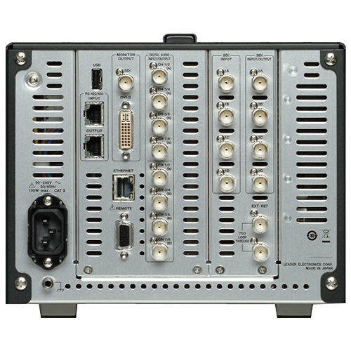 Supplementing its front-panel display, the LV5490 provides 1920 x 1080 HD DVI and HD-SDI feeds for connection to external monitors. Simultaneous viewing of up to four 3 gigabit/s SDI inputs is possible, including overlays. The size and location of individual channels can be adjusted on the display using a USB pointer so the user is not limited to fixed-size quadrants. Operators can select the size and position of the measuring area as well as the Y/G/B/R component channel. An alarm can be set to alert operators if the noise level exceeds a predefined threshold. An integral low-pass filter allows elements of the high frequency band to be removed at the time of noise measurement.