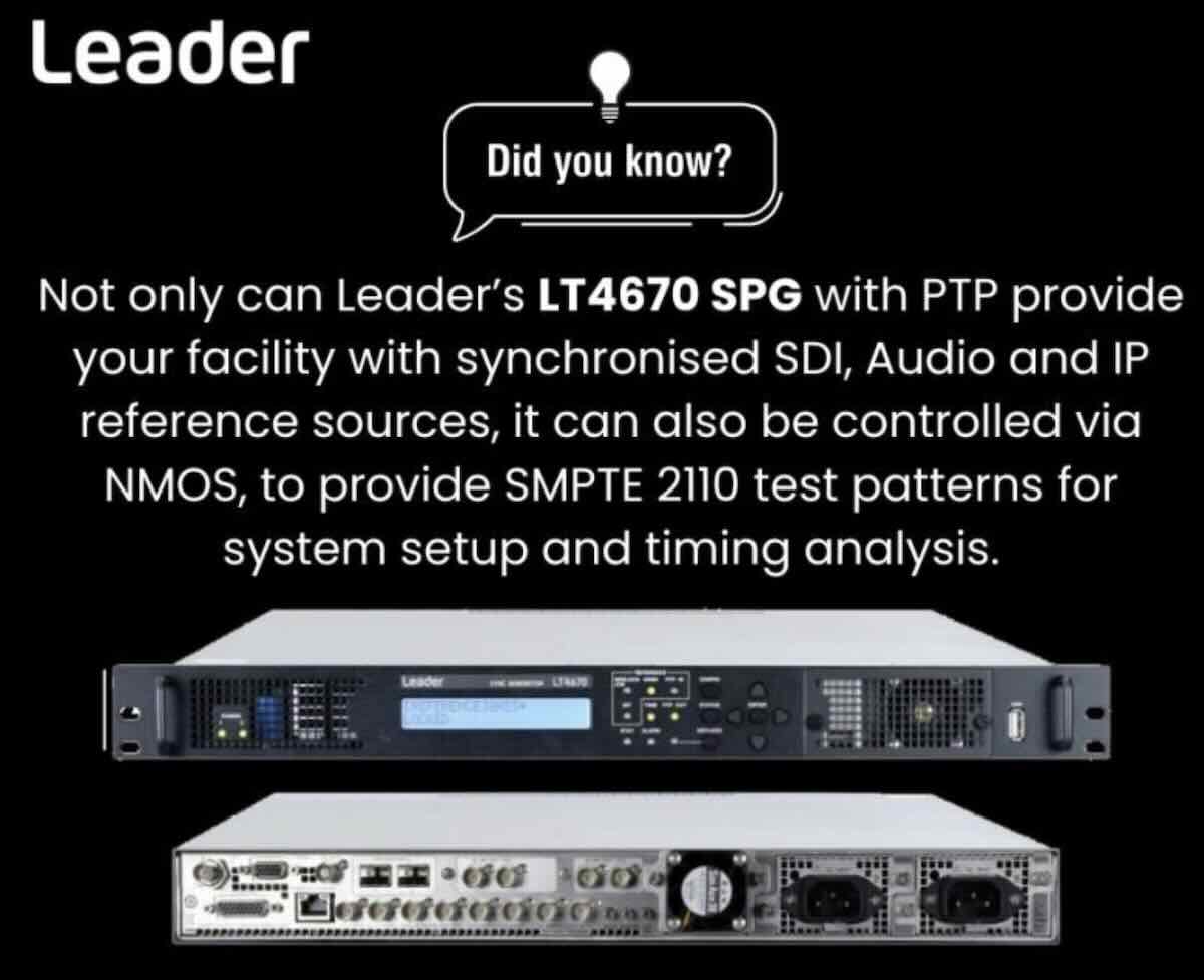 Il generatore di impulsi di sincronismo LT4670 di Leader è progettato per rispondere alle esigenze delle reti ibride SDI/IP di nuova generazione.